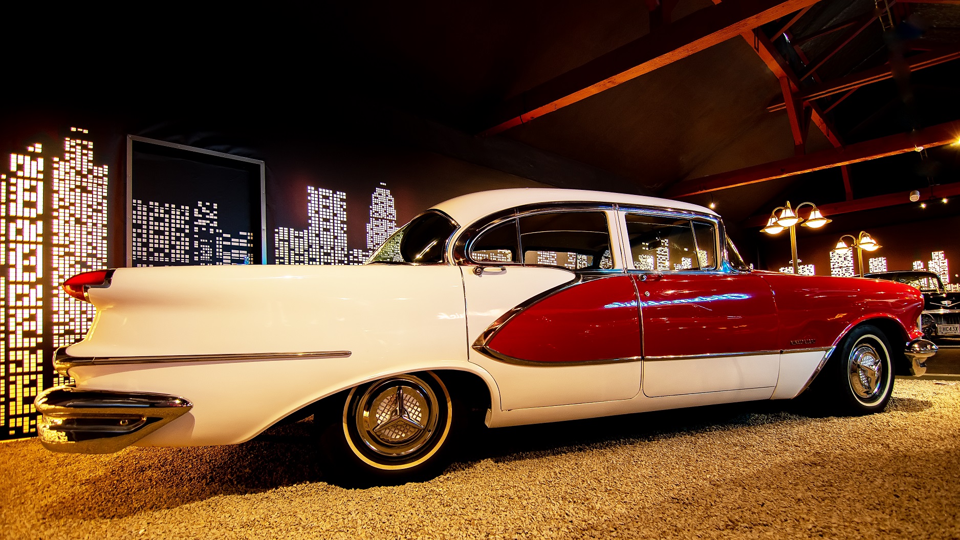 Great land. Název jsme si nevypůjčili ze žádného filmu ani knihy. Prostě nás to, když jsme se rozhlédli po tomto sále, napadlo. Pamětníci, kteří muzeum navštívili v prvních pěti letech jeho existence, možná vzpomenou, že náplň i vzhled sálu byl zcela jiný. Nebyly zde jen "ameriky", ale i jiné, legendární světové vozy. Pak jsme si ale řekli - kdo jsme a co chceme být? Jsme Muzeum amerických automobilů a chceme být největší v Evropě! Všechno šlo ven, sál dostal zcela nové kulisy, charisma a je nyní jedním z nejkrásnějších v muzeu.