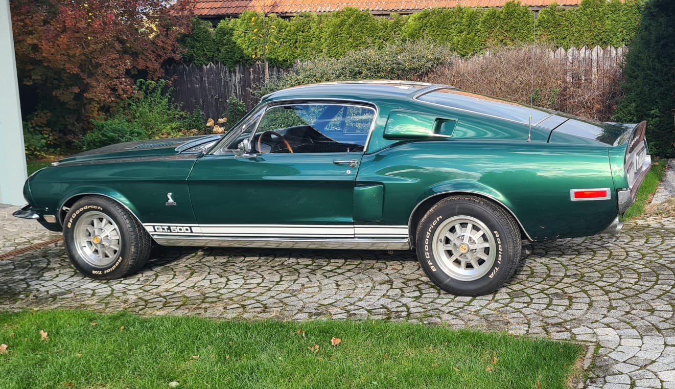 Nabízíme k prodeji legendární Ford Mustang Shelby GT500 Fastback, rok výroby 1968, ve velmi zachovalém stavu s kompletní dokumentací. Vůz má platné české doklady včetně přidělené SPZ, aktuální STK a testace historického vozidla. Zakoupen byl koncem roku 2023 prostřednictvím společnosti Veteráni na Truc, která zajistila dovoz z Norska i kompletní přihlášení. Předchozí majitel vlastnil vůz dlouhodobě, byl členem Shelby klubu a před cca 20 lety provedl kompletní renovaci. Od té doby bylo auto využíváno jen minimálně, převážně k příležitostným jízdám a vystavování na srazech a výstavách. K vozu náleží také originální díly, včetně karburátoru, volantu a dalších drobností. Automobil je pravidelně servisován – výměny oleje, základní údržba, leštění laku a aplikace keramické ochrany.